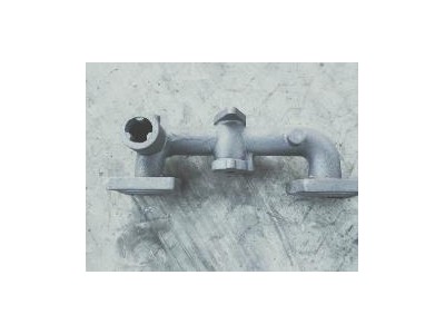 原理与冷铁相似,但可以免除冷铁制造引起成本增加的缺点。在易产生缺陷的热节部位附近模具上设置直径5~8mm的细棒,或厚2~5mm的散热薄片,浇注后,细圆棒或者薄片快速凝固,快速散热,带动该热节部位凝固速度加快,相当于在该位置放置了一块冷铁,将缩松移位或者消 除。使用冷筋或者散热薄片,以及排气管球铁泵体铸件使用冷筋的照片。